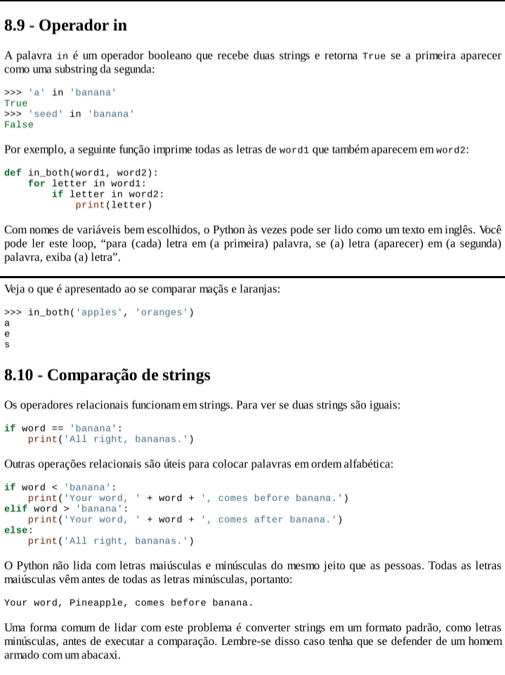 Comandos lógicos para usar quando for comparar uma string, comando in #existe uma letra ou palavra na nome, utilizando o comando in eu pergunto se a #letra m por exemplo está contida na variável nome se estiver retorna que é true se #não retorna false